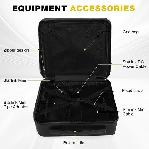 - Compatibility: Starlink Mini dish and accessories (power supply, cables, adapters, kickstand)